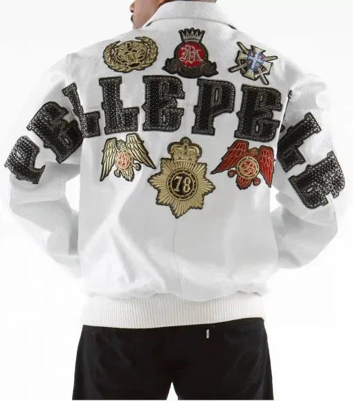 The Pelle Pelle White Decorated Crocodile Leather Jacket is a bold and luxurious statement piece that redefines high-end streetwear. This jacket combines the elegance of crocodile-embossed leather with Pelle Pelle’s signature artistic flair. Adorned with intricate decorations and detailed embroidery, it is designed to stand out while offering unmatched craftsmanship. Its sleek white design with crocodile texture makes it an iconic addition to any fashion-forward wardrobe.