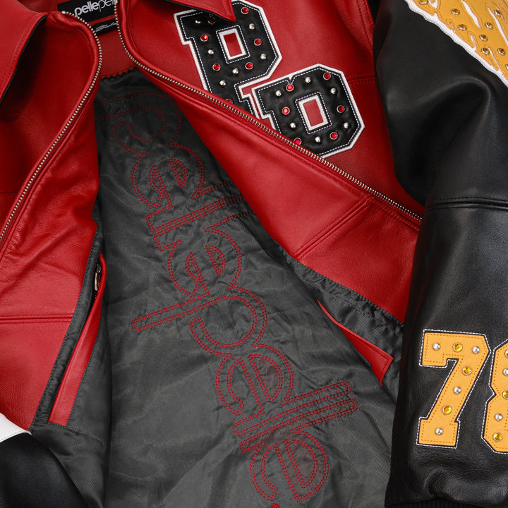 -The back "Pelle Pelle renegade" artwork at the back of the jacket is multiple leather layers with rhinestones and studs throughout.